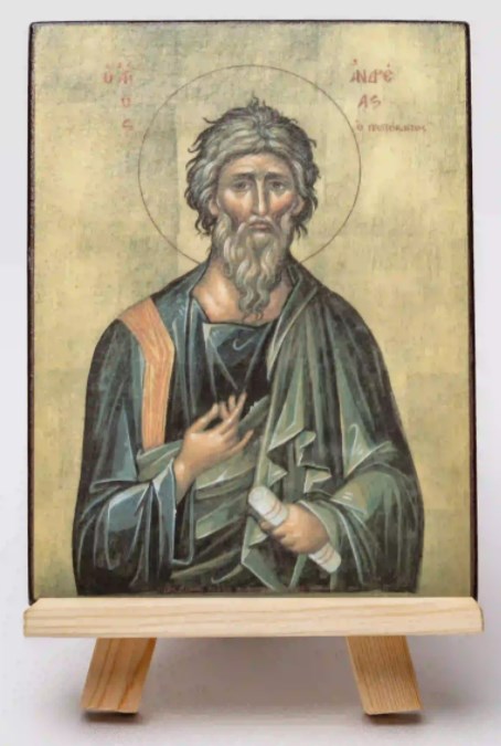 С самого раннего детства Андрей имел наклонности к молитвам. Он так и не женился, стал учеником Иоанна Крестителя. После того, как Креститель показал Андрею на Иисуса, он сразу же пошел за Христом. Андрей был самым первым учеником Иисуса.