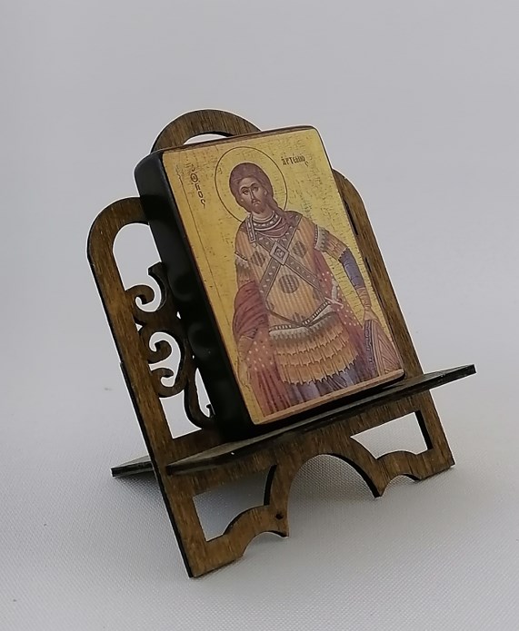 - Святой великомученик Андрей Стратилат, арт И788 / 15 х 20 х 1,8 см (Сосна АА)