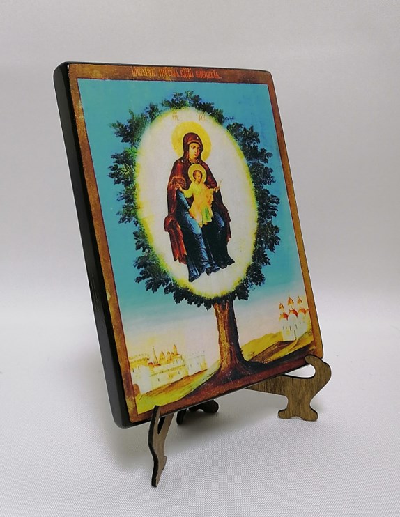Скромное, но яркое, убранство иконы на дереве, ничуть не обесценивает её. Наоборот, сдержанность говорит об истинной ценности, той, что не измерить материальными благами. Отсутствие пафоса выражает прямое назначение иконы – бескорыстную помощь.