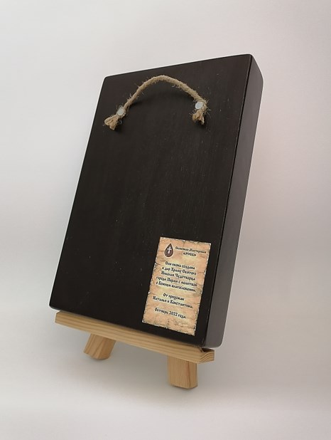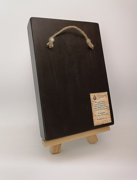 Основа иконы, изготовленной нашими верующими мастерами, доска из хвойных пород дерева, что позволяет её назвать - “живой” иконой. Природный материал несёт в себе живую энергетику. Эффект состаривания – придаёт особый колорит. Такая икона гармонично смотрится практически в любом интерьере.