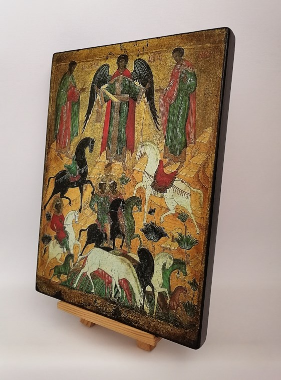 Основа иконы, изготовленной нашими верующими мастерами, доска из хвойных пород дерева, что позволяет её назвать - “живой” иконой. Природный материал несёт в себе живую энергетику. Эффект состаривания – придаёт особый колорит. Такая икона гармонично смотрится практически в любом интерьере.