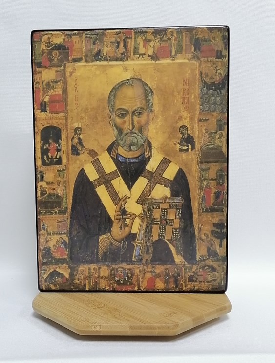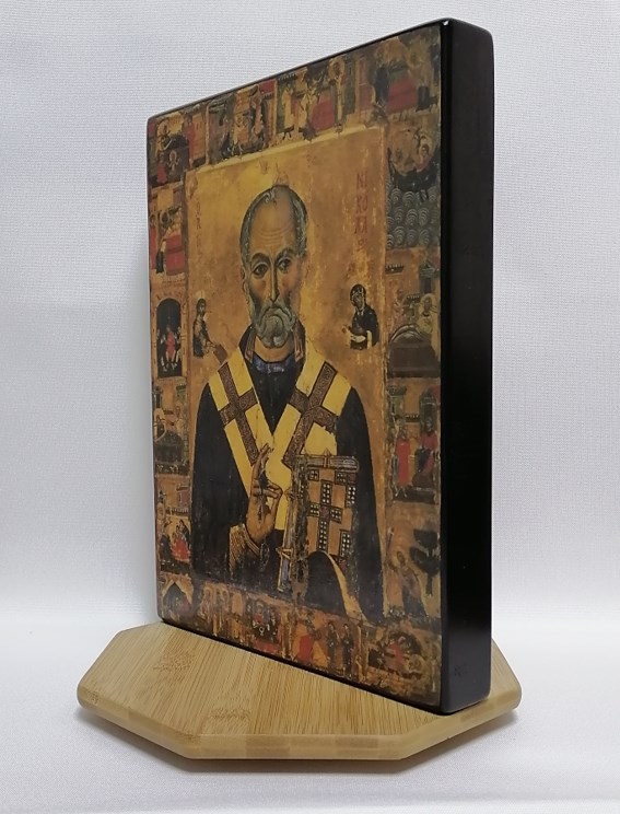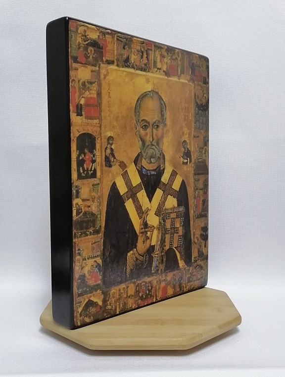 Основа иконы, изготовленной нашими верующими мастерами, доска из хвойных пород дерева, что позволяет её назвать - “живой” иконой. Природный материал несёт в себе живую энергетику. Эффект состаривания – придаёт особый колорит. Такая икона гармонично смотрится практически в любом интерьере.