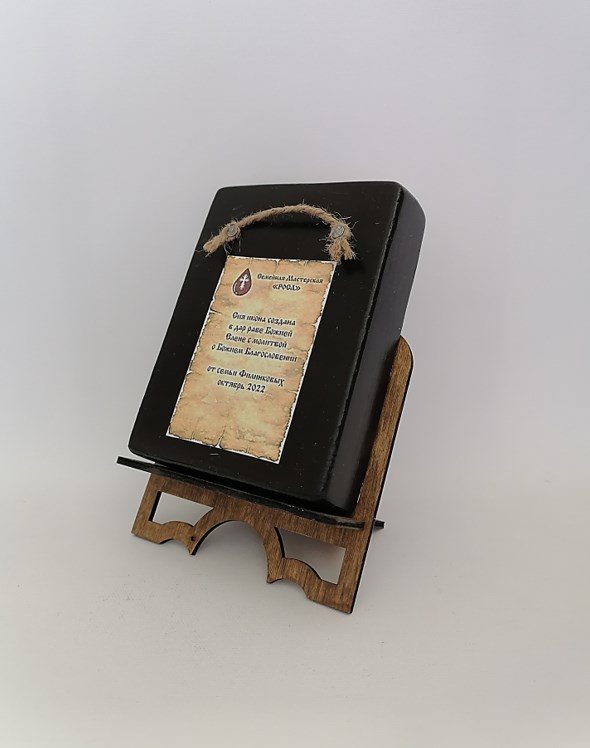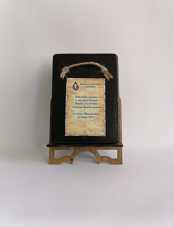 Основа иконы, изготовленной нашими верующими мастерами, доска из хвойных пород дерева, что позволяет её назвать - “живой” иконой. Природный материал несёт в себе живую энергетику. Эффект состаривания – придаёт особый колорит. Такая икона гармонично смотрится практически в любом интерьере.