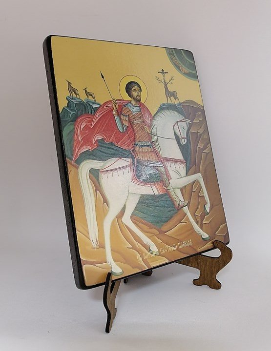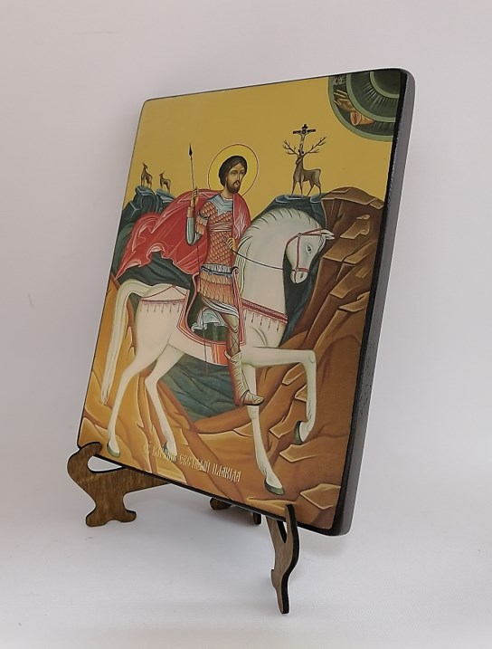 Заказать и купить икону на дереве ручной работы "Евстафий Плакида, великомученик, 15x20 см, арт Ид3979"