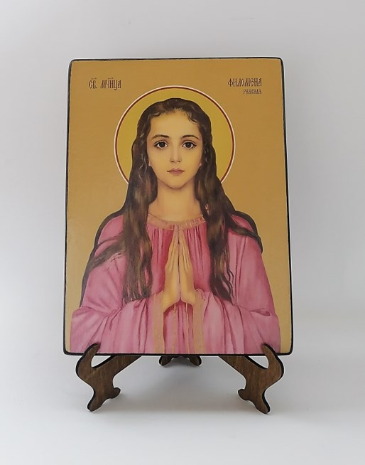 Заказать и купить икону на дереве ручной работы "Филомена Римская, мученица, 15x20 см, арт Ид4507"