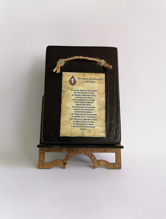 Основа иконы, изготовленной нашими верующими мастерами, доска из хвойных пород дерева, что позволяет её назвать - “живой” иконой. Природный материал несёт в себе живую энергетику. Эффект состаривания – придаёт особый колорит. Такая икона гармонично смотрится практически в любом интерьере.