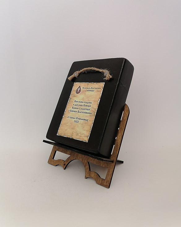 Основа иконы, изготовленной нашими верующими мастерами, доска из хвойных пород дерева, что позволяет её назвать - “живой” иконой. Природный материал несёт в себе живую энергетику. Эффект состаривания – придаёт особый колорит. Такая икона гармонично смотрится практически в любом интерьере.