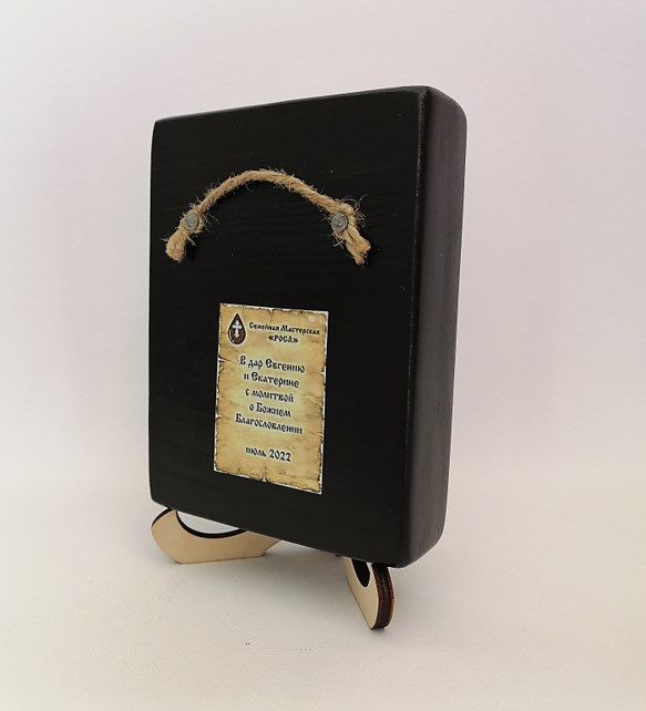 Основа иконы, изготовленной нашими верующими мастерами, доска из хвойных пород дерева, что позволяет её назвать - “живой” иконой. Природный материал несёт в себе живую энергетику. Эффект состаривания – придаёт особый колорит. Такая икона гармонично смотрится практически в любом интерьере.