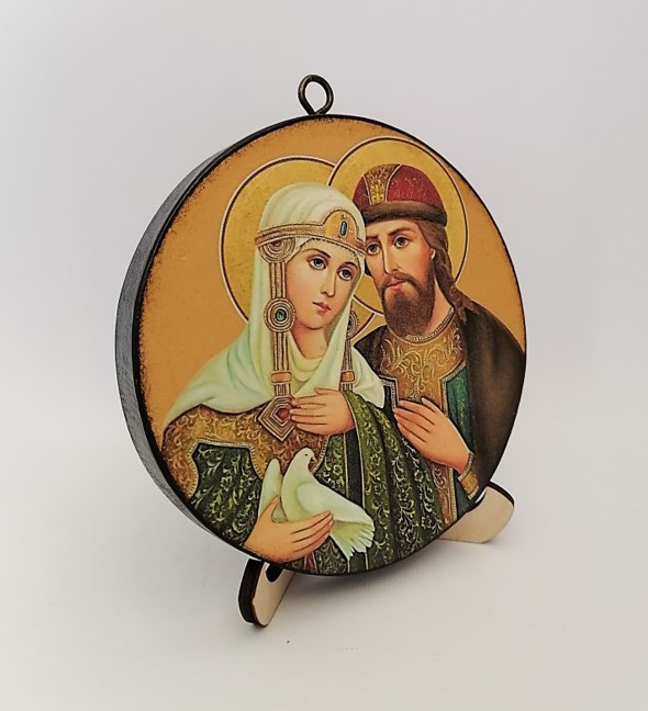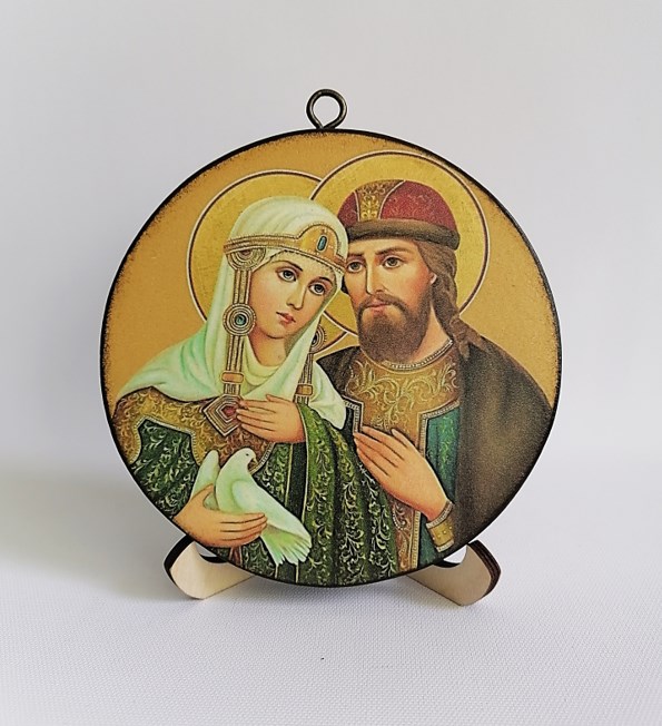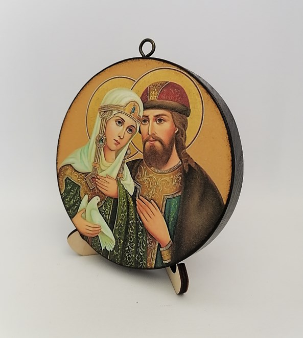 Петр и Феврония. Круглая икона. Диаметр 12 х 1,5 см, арт И8989-4
