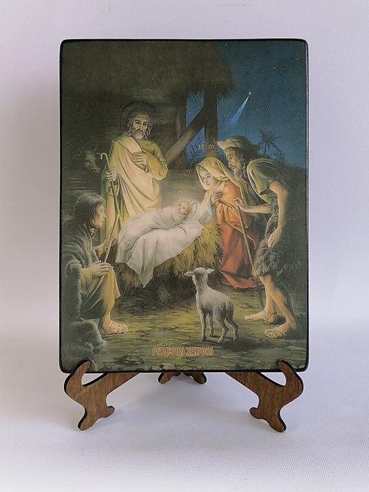 Заказать и купить икону на дереве ручной работы "Рождество Христово, 15х20 см, арт И8706"