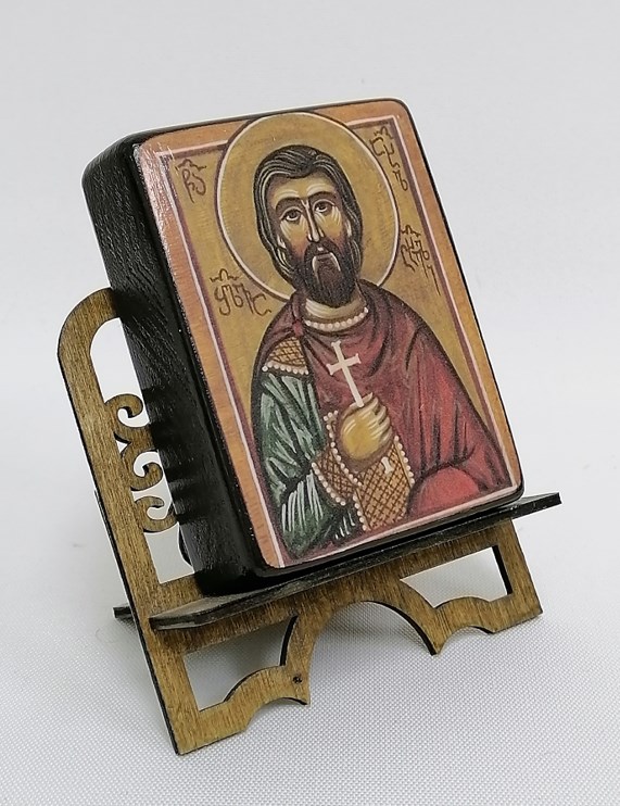 - Святой великомученик Андрей Стратилат, арт И788 / 15 х 20 х 1,8 см (Сосна АА)