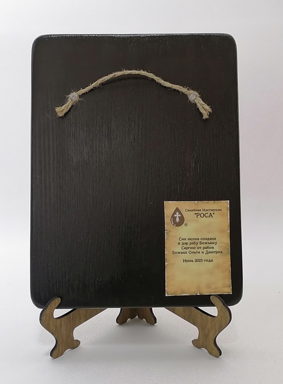 Основа иконы, изготовленной нашими верующими мастерами, доска из хвойных пород дерева, что позволяет её назвать - “живой” иконой. Природный материал несёт в себе живую энергетику. Эффект состаривания – придаёт особый колорит. Такая икона гармонично смотрится практически в любом интерьере.