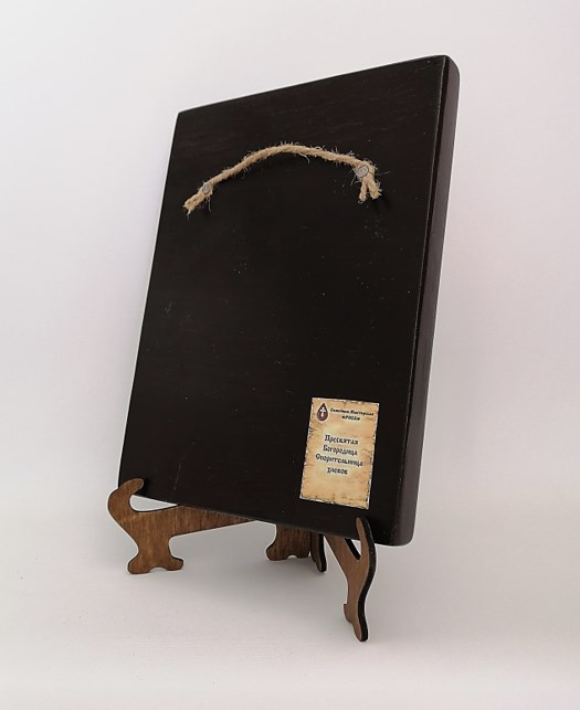 Скромное, но яркое, убранство иконы на дереве, ничуть не обесценивает её. Наоборот, сдержанность говорит об истинной ценности, той, что не измерить материальными благами. Отсутствие пафоса выражает прямое назначение иконы – бескорыстную помощь.