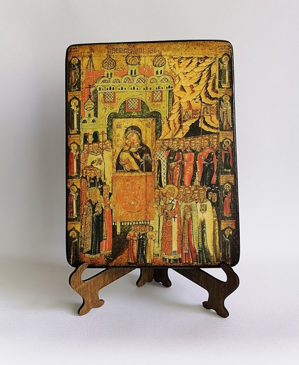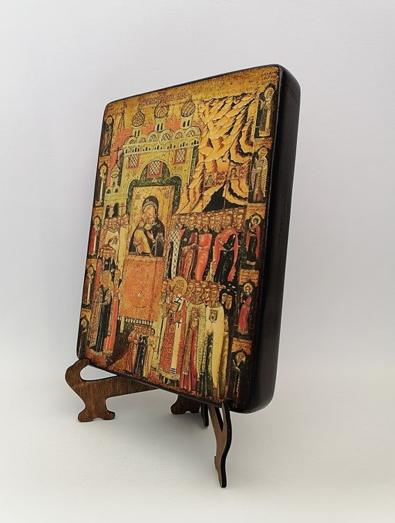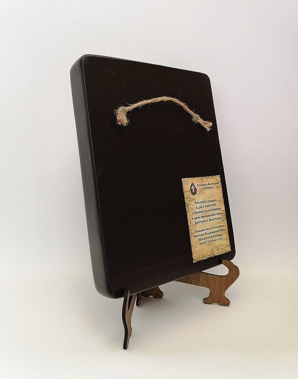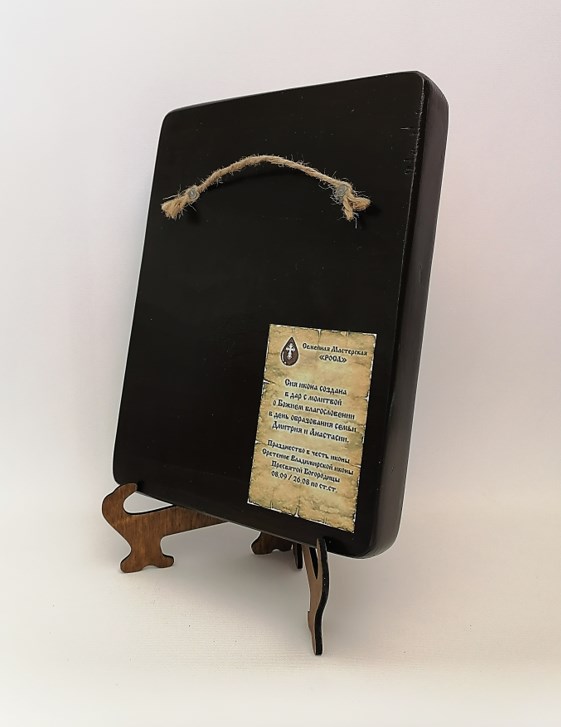 Основа иконы, изготовленной нашими верующими мастерами, доска из хвойных пород дерева, что позволяет её назвать - “живой” иконой. Природный материал несёт в себе живую энергетику. Эффект состаривания – придаёт особый колорит. Такая икона гармонично смотрится практически в любом интерьере.