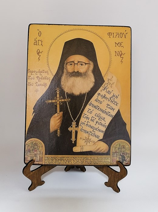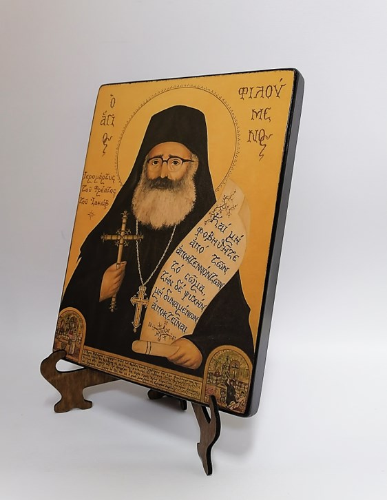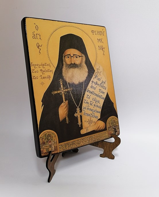 Заказать и купить икону на дереве ручной работы "Священномученик архимандрит Филумен (Хасапис) Святогробец, 15x20x1,8 см, арт А4778"
