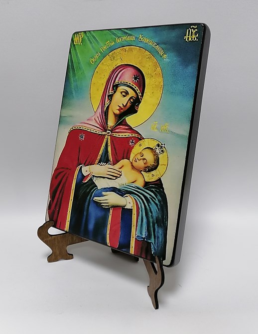 Скромное, но яркое, убранство иконы на дереве, ничуть не обесценивает её. Наоборот, сдержанность говорит об истинной ценности, той, что не измерить материальными благами. Отсутствие пафоса выражает прямое назначение иконы – бескорыстную помощь.